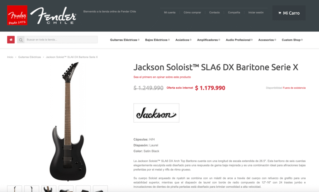 Descrizione: Uno dei più grandi e-commerce musicali del Cile. Ho collaborato al team di sviluppo per migliorare l’interfaccia utente e la resa responsive.